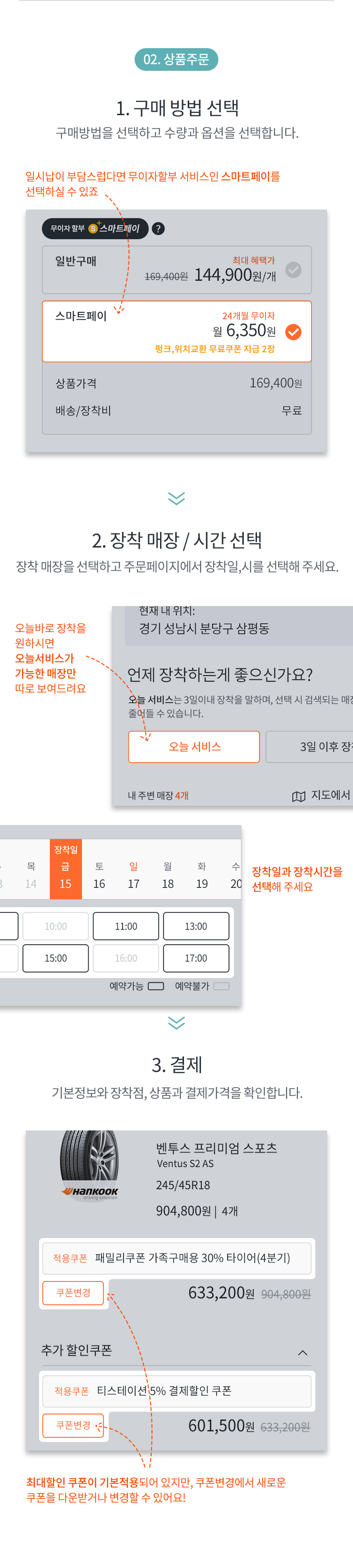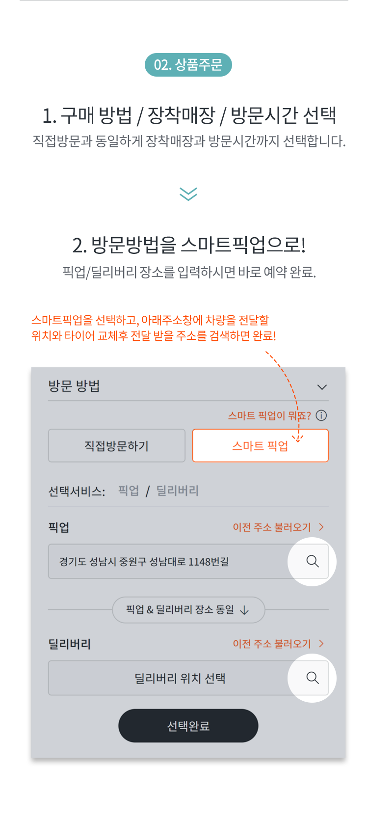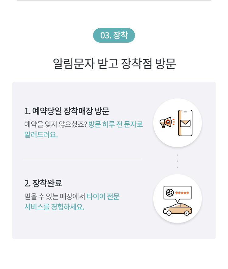 타이어 주문부터 장착까지 스마트하게 이용하세요.​
