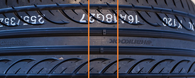 트레드 홈 속에 돌출된 마모한계 표시가 있어, 타이어의 마모가 이 곳과 가깝게 닳았는지 확인하면서 마모의 정도를 판단할 수 있습니다.